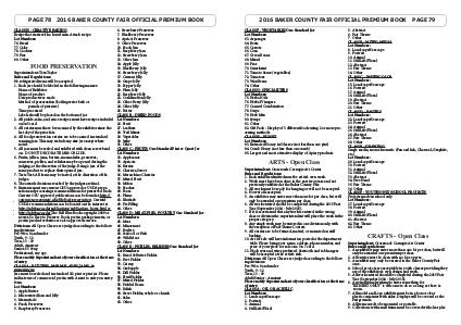 PAGE 78 2016 BAKER COUNTY FAIR OFFICIAL PREMIUM BOOK