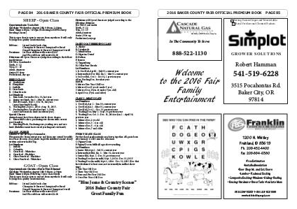2016 BAKER COUNTY FAIR OFFICIAL PREMIUM BOOK PAGE 85