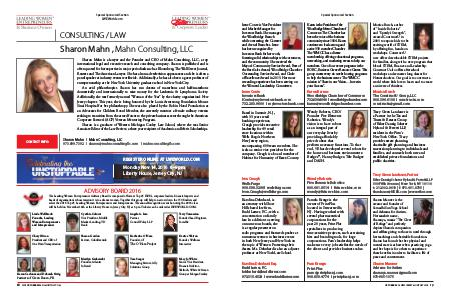 Sharon Mahn is a lawyer and the Founder and CEO of Mahn Consulting, LLC, a top international legal and executive search and consulting company. Sharon is published and is often quoted for her expertise in major periodicals such as Bloomberg, The Wall Street Journal, Reuters and The American Lawyer. She has also made television appearances and she is often a panel speaker at industry events worldwide. Additionally, she has also been a guest professor of entrepreneurship at the New York University graduate school in New York City.