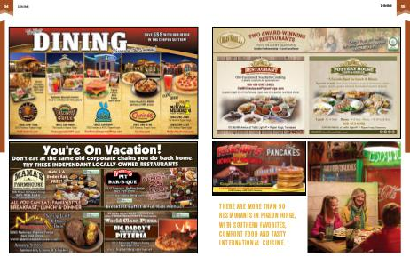 DINING THERE ARE MORE THAN 90 RESTAURANTS IN PIGEON FORGE, WITH SOUTHERN FAVORITES, COMFORT FOOD AND TASTY INTERNATIONAL CUISINE. 55
