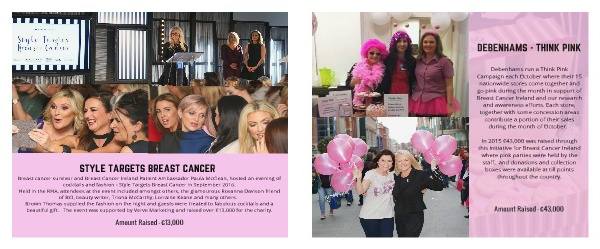 Debenhams run a Think Pink Campaign each October where their 15 nationwide stores come together and go pink during the month in support of Breast Cancer Ireland and our research and awareness efforts. Each store, together with some concession areas contribute a portion of their sales during the month of October.