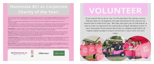 If you would like to be on our list of volunteers for various events that we have on throughout the year and around the country we would love to hear from you. We may call upon you to marshal at a race or even to represent the charity at a cheque handover event in your local area. If you would like to join us, please email Helen at hvallence @ bciresearch. ie and she will be in touch with the next steps.