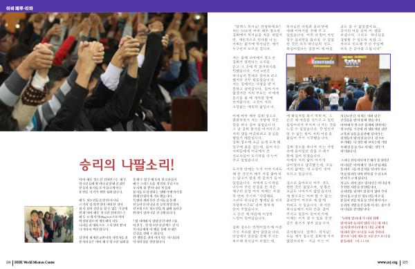 집회 장소를 떠나며 저는 가방 속에 들어있던 칼을 쓰레기 통에 집어 던졌습니다. 어제가 저의 삶이 마지막 날이었다고 생각했는데, 오늘 저의 삶에는 새 소망이 솟아 오르고 있습니다.