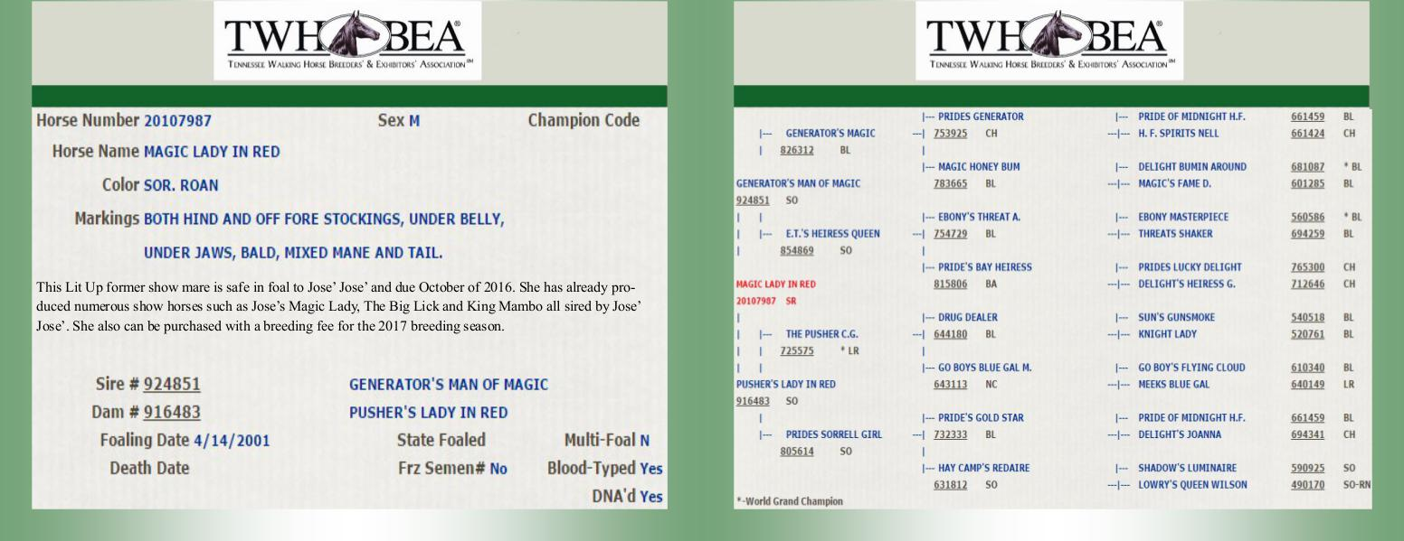Jose’. She also can be purchased with a breeding fee for the 2017 breeding season.