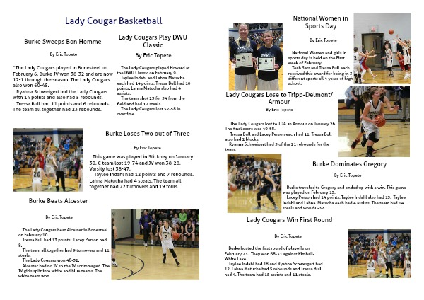 Burke hosted the first round of playoffs on February 23. They won 68-31 against Kimball- White Lake.