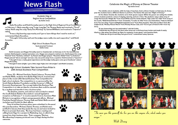 The middle school students, with the help of teachers, held a dinner theater on February 16. Every year the students have a different theme to perform. The theme this year was "Night of Disney."