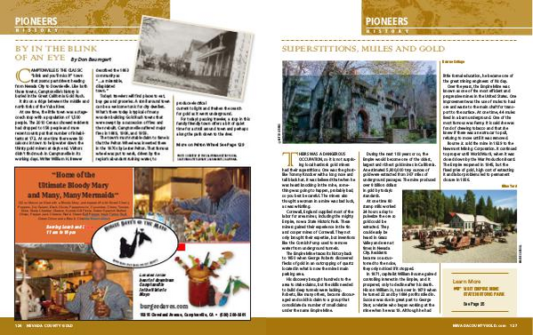 The Empire Mine traces its history back to 1850 when George Roberts discovered flecks of gold in an outcropping of quartz located in what is now the mine’ s main parking area.