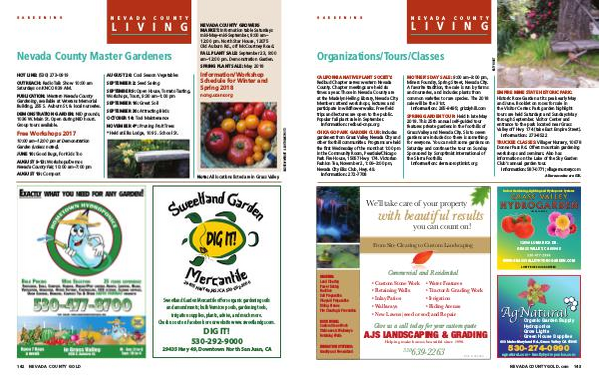 SPRING GARDEN TOUR: Held in late May 2018. This 25th annual self-guided tour features private gardens in the foothills of Grass Valley and Nevada City. Six to seven gardens are included so there is something for everyone. You can visit some gardens on Saturday and continue the tour on Sunday. Sponsored by Soroptimist International of the Sierra Foothills.