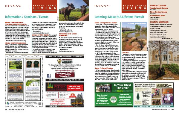 The Nevada County Library System consists of six facilities including a history library that contains research material covering the county’ s history( see page 37).