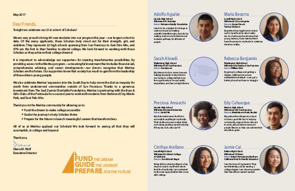 comprehensive advising, and career development—our donors recognize that Meritus
