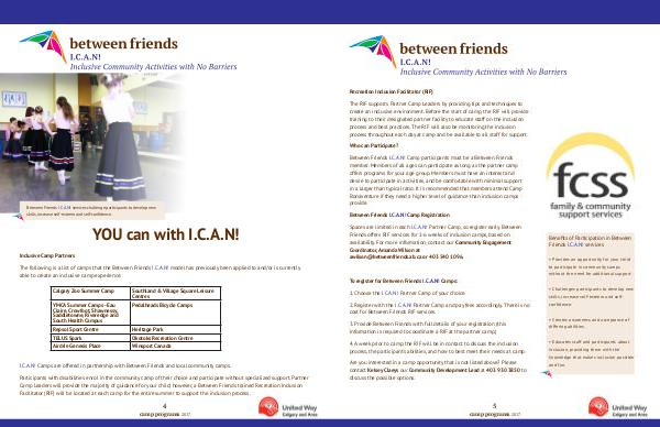 I. C. A. N! Camps are offered in partnership with Between Friends and local community camps.