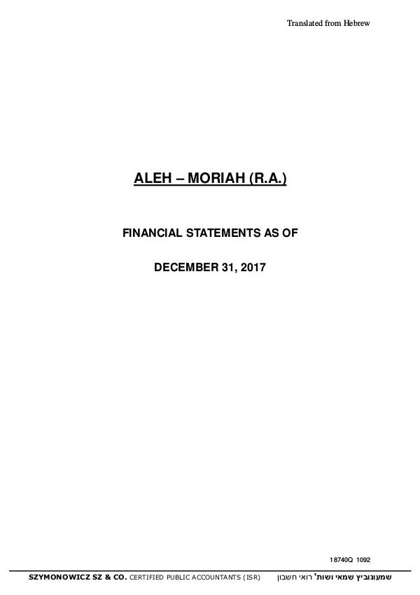 2017 Financial Statements - ALEH Gedera 2017 Financial Statements - ALEH Gedera