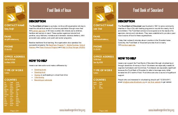The Food Bank of Iowa is a private, not-for-profit organization striving to