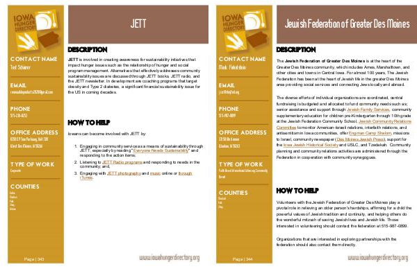 The diverse efforts of individual organizations are coordinated, central fundraising is budgeted and allocated to fund community needs such as; senior assistance and support through Jewish Family Services, community supplementary education for children pre-Kindergarten through 10th grade at the Jewish Federation Community School, Jewish Community Relations Committee to monitor American-Israeli relations, interfaith relations, and antisemitism in Iowa communities, offer Engman Camp Shalom, missions to Israel, community newspaper( Des Moines Jewish Press), support for the Iowa Jewish Historical Society and IJSLC, and Tzedakah. Community planning and community relations activities are administered through the Federation in cooperation with community synagogues.