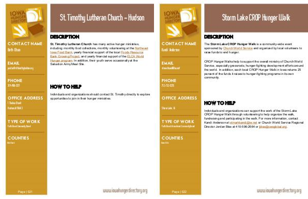the world. In addition, each local CROP Hunger Walk in Iowa returns 25