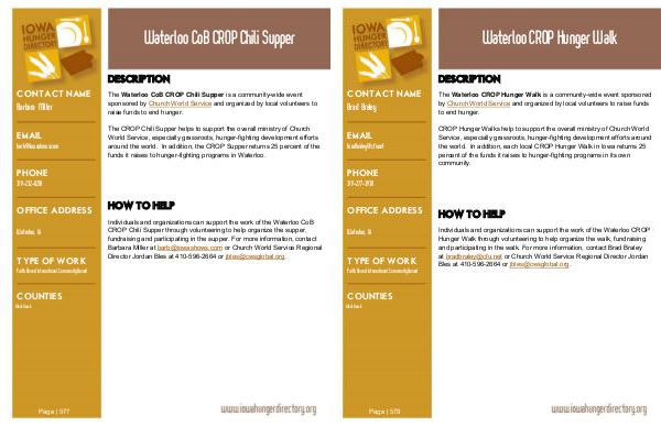 CROP Hunger Walks help to support the overall ministry of Church World Service, especially grassroots, hunger-fighting development efforts around the world. In addition, each local CROP Hunger Walk in Iowa returns 25 percent of the funds it raises to hunger-fighting programs in its own community.