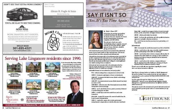 www. bachrealestate. com | 5301 Buckeystown Pike | cell: 301-305-0133 | office: 301-695-9600 ext 109 | MHBR # 2050 26 LakeTalk February 2017