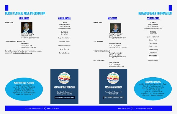 Click HERE for more info! redwood PLAYDAYS April 24- Blue Rock Springs GC- East ** May 22- Fountaingrove CC June 19- Bodega Harbour GL * July 17- Vinter’ s GC August 21- Northwood GC September 18- Indian Valley GC October 9- Bennett Valley GC www. GOLFPWGA. org 17 2017 PWGA Member Handbook