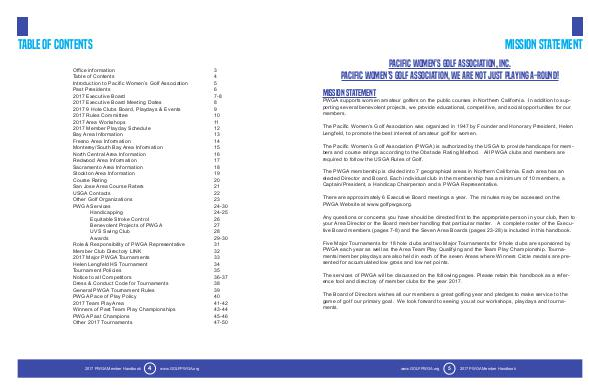 The services of PWGA will be discussed on the following pages. Please retain this handbook as a reference tool and directory of member clubs for the year 2017.