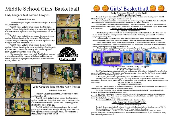 The lady Cougars played the Colome Cowgirls at Burke on December 6.