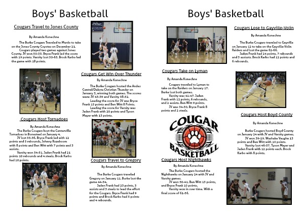 The Burke Cougars traveled Gregory on January 11. Burke lost the game 44-54.