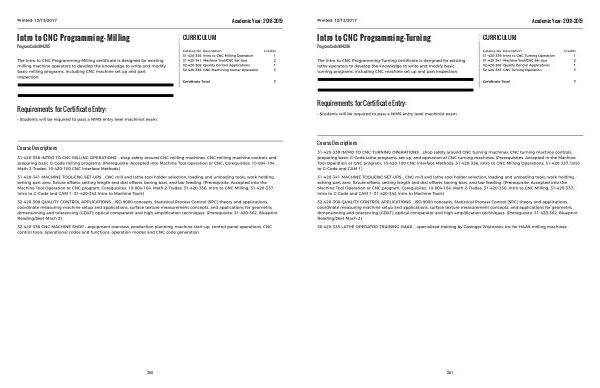 Academic Year: 2018-2019 Intro to CNC Programming-Turning CURRICULUM Program Code 904206 Requirements for Certificate Entry: Course Descriptions 261