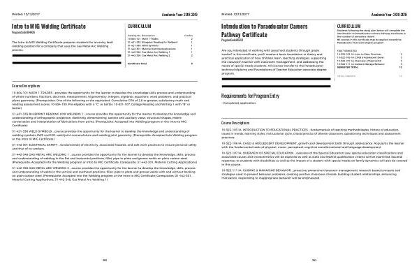 Academic Year: 2018-2019 Intro to MIG Welding Certiļ¬cate CURRICULUM Program Code 904426 Course Descriptions 262
