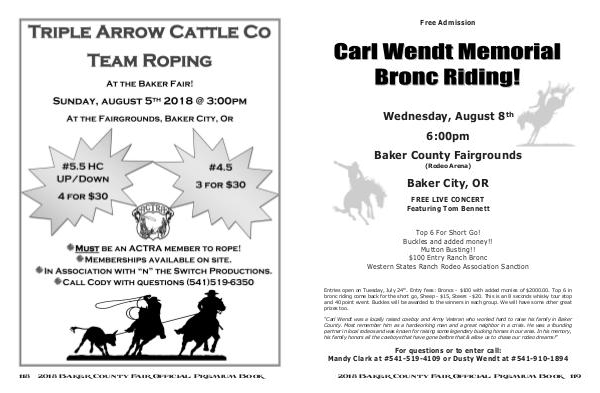 “ Carl Wendt was a locally raised cowboy and Army Veteran who worked hard to raise his family in Baker County. Most remember him as a hardworking man and a great neighbor in a crisis. He was a founding partner in local rodeos and was known for raising some legendary bucking horses in our area. In his memory, his family honors all the cowboys that have gone before that & allow us to chase our rodeo dreams!”