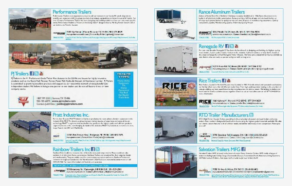 trailers including basic Utility, Cargo, Goosenecks, Dumps, Concession, Porch, Aluminum, Living Quarters,