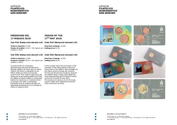 Marino emette due stamp and coincard.