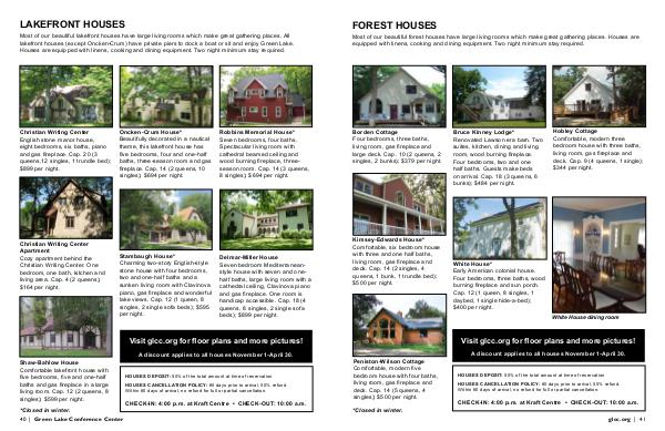 Visit glcc. org for floor plans and more pictures! A discount applies to all houses November 1-April 30.