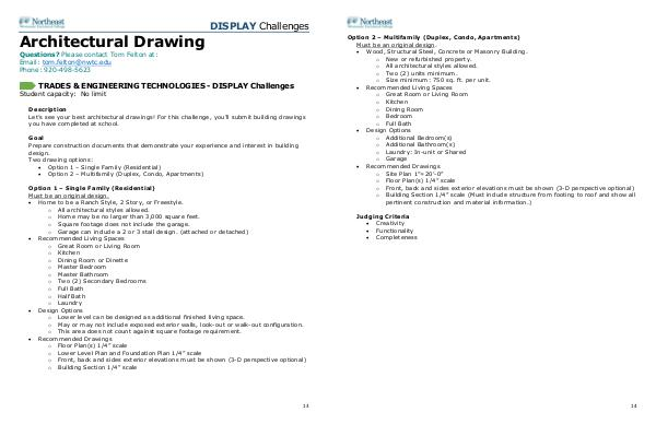 � Recommended Drawings o Site Plan 1”= 20’-0” o Floor Plan( s) 1 / 4” scale o Front, back and sides exterior elevations must be shown( 3-D perspective optional) o Building Section 1 / 4” scale( Must include structure from footing to roof and show all pertinent construction and material information.)