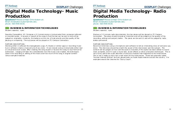 Produce a 2-3 minute radio documentary, the top pieces will be played on TC Campus