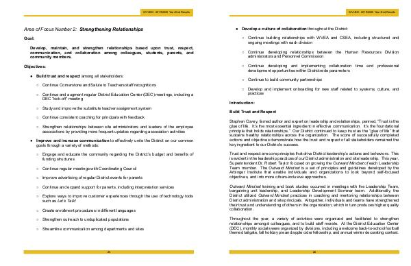 Trust and respect are core principles that drive District leadership’s actions and behaviors. This