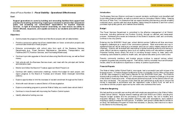 Area of Focus Number 3: Fiscal Stability: Operational Effectiveness
