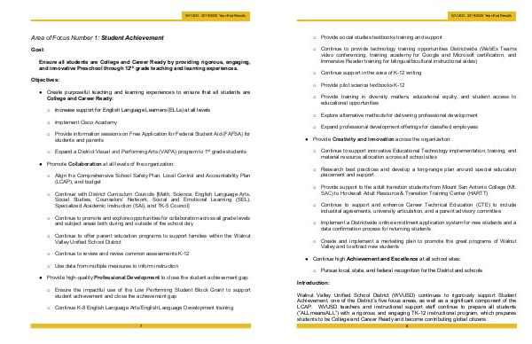 Area of Focus Number 1: Student Achievement