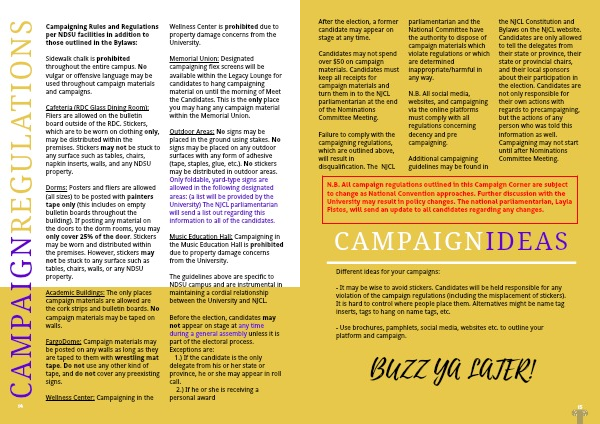 Campaigning Rules and Regulations per NDSU facilities in addition to those outlined in the Bylaws: