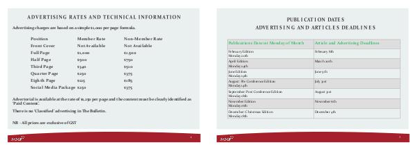 Advertorial is available at the rate of $1,250 per page and the content must be clearly identified as
