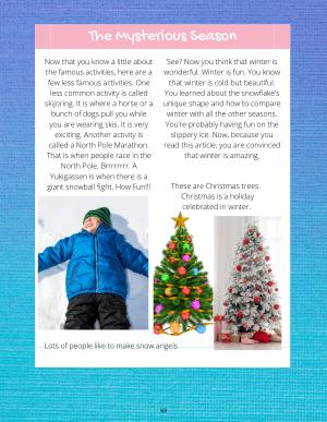 See ? Now you think that winter is wonderful . Winter is fun . You know that winter is cold but beautiful . You learned about the snowflake ’ s unique shape and how to compare winter with all the other seasons . You ’ re probably having fun on the slippery ice . Now , because you read this article , you are convinced that winter is amazing .