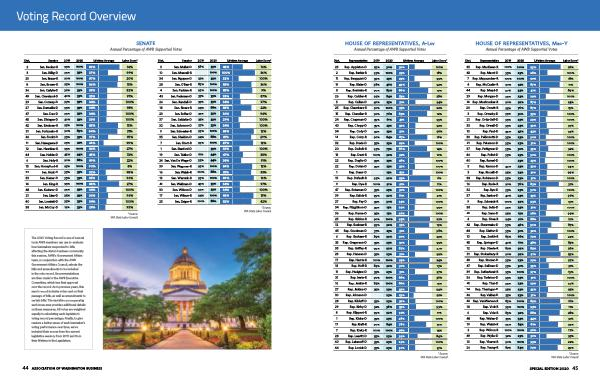 19 Rep . Blake-D 58 % 46 % 49 % 92 % 8 Rep . Boehnke-R 90 % 83 % 86 % 19 % 26 Rep . Caldier-R 95 % 84 % 83 % 28 % 5 Rep . Callan-D 40 % 23 % 31 % 94 % 25 Rep . Chambers-R 90 % 100 % 95 % 22 % 15 Rep . Chandler-R 90 % 76 % 85 % 12 % 24 Rep . Chapman-D 35 % 61 % 41 % 93 % 43 Rep . Chopp-D 35 % 23 % 32 % 92 % 34 Rep . Cody-D 35 % 23 % 31 % 96 % 14 Rep . Corry-R 90 % 84 % 87 % 16 % 32 Rep . Davis-D 35 % 23 % 29 % 100 % 20 Rep . DeBolt-R 95 % 75 % 86 % 14 % 13 Rep . Dent-R 100 % 92 % 92 % 10 % 22 Rep . Doglio-D 35 % 23 % 28 % 100 % 22 Rep . Dolan-D 35 % 23 % 32 % 100 % 1 Rep . Duerr-D 15 % 15 % 100 % 15 Rep . Dufault-R 95 % 92 % 93 % 6 % 9 Rep . Dye-R 100 % 91 % 91 % 11 % 47 Rep . Enteman-D 35 % 25 % 30 % 100 % 39 Rep . Eslick-R 95 % 92 % 81 % 21 % 27 Rep . Fey-D 35 % 30 % 34 % 100 % 34 Rep . Fitzgibbon-D 35 % 15 % 29 % 99 % 36 Rep . Frame-D 35 % 15 % 26 % 100 % 25 Rep . Gildon-R 90 % 100 % 95 % 22 % 12 Rep . Goehner-R 95 % 92 % 93 % 19 % 45 Rep . Goodman-D 37 % 23 % 31 % 98 % 6 Rep . Graham-R 89 % 92 % 90 % 29 % 33 Rep . Gregerson-D 35 % 23 % 30 % 99 % 35 Rep . Griffey-R 95 % 92 % 87 % 27 % 23 Rep . Hansen-D 35 % 23 % 31 % 99 % 17 Rep . Harris-R 100 % 100 % 93 % 24 % 18 Rep . Hoff-R 89 % 92 % 90 % 13 % 11 Rep . Hudgins-D 35 % 23 % 31 % 97 % 31 Rep . Irwin-R 90 % 100 % 86 % 36 % 16 Rep . Jenkin-R 85 % 100 % 86 % 15 % 27 Rep . Jinkins-D 35 % 23 % 32 % 94 % 30 Rep . Johnson-D 23 % 23 % 92 % 28 Rep . Kilduff-D 35 % 23 % 32 % 100 % 29 Rep . Kirby-D 32 % 38 % 35 % 99 % 8 Rep . Klippert-R 95 % 92 % 92 % 11 % 1 Rep . Kloba-D 35 % 23 % 28 % 100 % 17 Rep . Kraft-R 90 % 84 % 78 % 15 % 7 Rep . Kretz-R 100 % 100 % 96 % 14 % 28 Rep . Leavitt-D 55 % 23 % 39 % 84 % 40 Rep . Lekanoff-D 35 % 23 % 29 % 100 % 44 Rep . Lovick-D 35 % 23 % 30 % 97 %