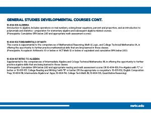 GENERAL STUDIES DEVELOPMENTAL COURSES CONT .
