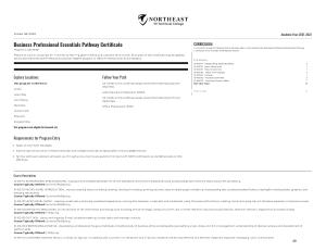 Curriculum : Students following the study plan below will complete the Business Professional Essentials Pathway Certi�cate in the number of semesters shown .