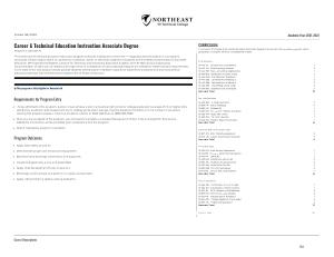Curriculum : The Career & Technical Education Instruction Degree is a two-year , �ve-semester program . Upon graduation , a student will have completed 66 credits .