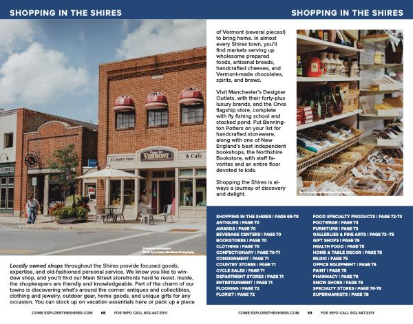 Locally owned shops throughout the Shires provide focused goods , expertise , and old-fashioned personal service . We know you like to window shop , and you ’ ll find our Main Street storefronts hard to resist . Inside , the shopkeepers are friendly and knowledgeable . Part of the charm of our towns is discovering what ’ s around the corner : antiques and collectibles , clothing and jewelry , outdoor gear , home goods , and unique gifts for any occasion . You can stock up on vacation essentials here or pack up a piece