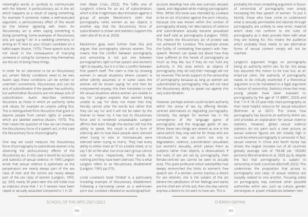account detailing how she was coerced , abused , raped , and degraded while making pornographic films . Whilst this book was intended by Lovelace to be an act of protest against the porn industry , because she was known within the context of pornography already , her descriptions of violence and subordination actually became sexualised and itself sold as pornography ( Langton , 1993 ). This means the illocutionary act of protest was not achieved for Lovelace . This example shows the futility of combatting free-speech with freespeech . Women can speak out about how they have suffered at the hands of pornography as much as they like , but if they do not hold any authority in this area ( which , as objects of pornography , they do not ) their message will not be received . This lends support to the censorship of pornography because as long as women are subordinated by pornography , they will not have the illocutionary ability to speak out against this very subordination .