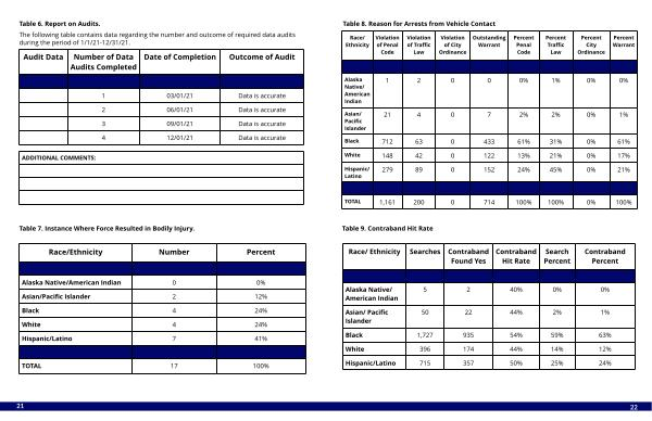 Table 8 . Reason for Arrest s from Vehicle Cont act
