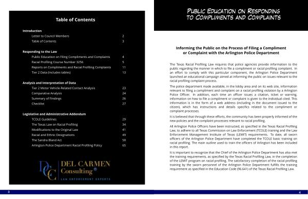 The Texas Racial Profiling Law requires that police agencies provide information to the public regarding the manner in which to file a compliment or racial profiling complaint . In an effort to comply with this particular component , the Arlington Police Department launched an educational campaign aimed at informing the public on issues relevant to the racial profiling complaint process .