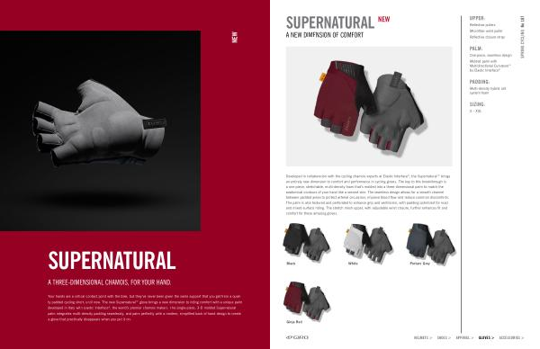 Developed in collaboration with the cycling chamois experts at Elastic Interface ® , the Supernatural™ brings an entirely new dimension to comfort and performance in cycling gloves . The key to this breakthrough is a one-piece , stretchable , multi-density foam that ’ s molded into a three-dimensional palm to match the anatomical contours of your hand like a second skin . The seamless design allows for a smooth channel between padded areas to protect arterial circulation , improve blood flow and reduce common discomforts . The palm is also textured and perforated to enhance grip and ventilation , with padding optimized for road and mixed-surface riding . The stretch mesh upper , with adjustable wrist closure , further enhances fit and comfort for these amazing gloves .