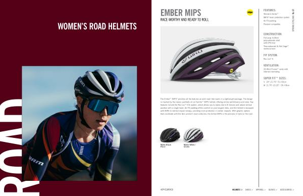 The Ember™ MIPS ® provides all the features an avid road rider wants in a lightweight package . The design is inspired by the classic aesthetic of our Synthe™ MIPS helmet , offering similar performance and style . Key features include the Roc Loc ® 5 fit system , which allows you to easily dial in fit tension and adjust vertical position with a single hand . Air-FX padding offers comfort on your longest rides , and the helmet is equipped with MIPS to redirect impact energy , providing more protection in certain impacts . With graphic options that coordinate with the Giro women ’ s road collection , the Ember MIPS is the pinnacle of style on the road .