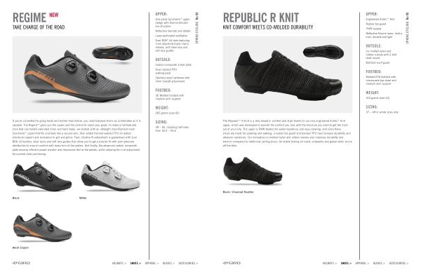 If you ’ re committed to going faster and further than before , you need footwear that ’ s as comfortable as it is capable . The Regime™ gives you the power and the control to reach your goals . To make a full-featured shoe that can handle extended miles and hard roads , we started with an ultralight monofilament mesh Synchwire™ upper that fits and feels like a second skin , then added thermal-welded TPU for added structural support and resistance to grit and grime . Fast , intuitive fit adjustment is guaranteed with dual BOA L6 buckles , steel laces and soft lace guides that allow you to get a precise fit with even pressure distribution to ensure comfort with every turn of the pedals . And finally , the advanced carbon composite plate ensures efficient power transfer and responsive feel at the pedals , while allowing 5mm of adjustment for optimal cleat positioning .